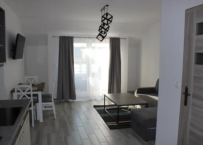 Apartament Marmi Ujście-Darłowskie는 Wyspa Lososiowa에서 2.5km 떨어져 있습니다. 이 1개의 베드룸 아파트는 작은 부엌과 1개의 욕실을 갖추고 있습니다.